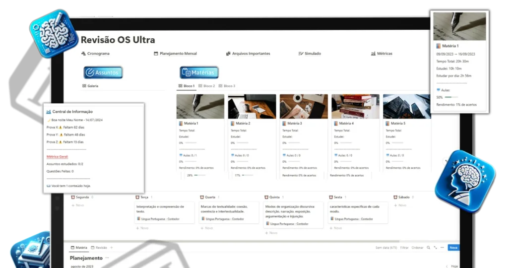 Organize suas matérias, planeje revisões e acompanhe seu desempenho em um só lugar. Chega de estudar de forma desorganizada – tenha total controle sobre sua preparação