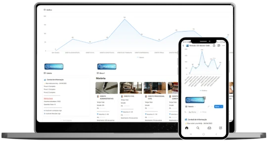 Monitore suas horas de estudo, taxa de acertos em questões e evolução por matéria. Tenha insights precisos sobre seu desempenho e tome decisões baseadas em dados.