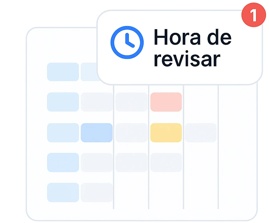 O sistema programa automaticamente quando revisar cada assunto baseado na ciência da memorização. Você só estuda, o resto é automático.